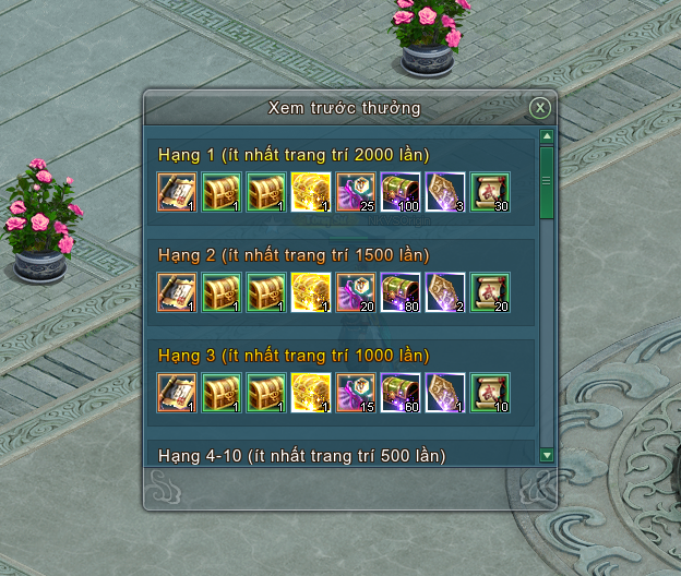 - Sau khi kết thúc sự kiện, tổng kết phát thưởng cho TOP 20 nhân vật.
