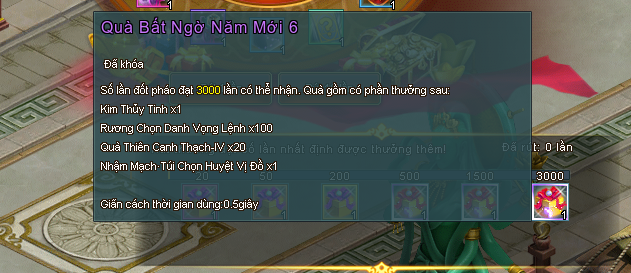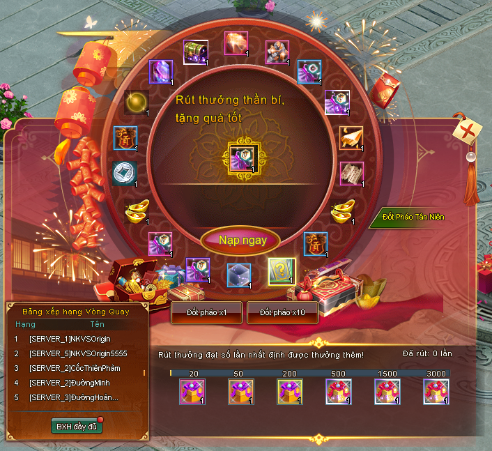 - Người chơi thực hiện quay Đốt Pháo Tân Niên đạt số lượng chỉ định để nhận thưởng.