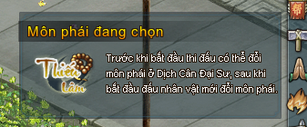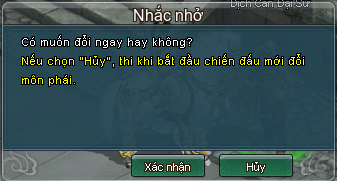 - Trong giai đoạn này, khi người chơi chọn thay đổi môn phái tại NPC thì sẽ có 2 lựa chọn: