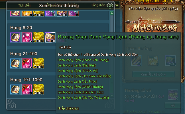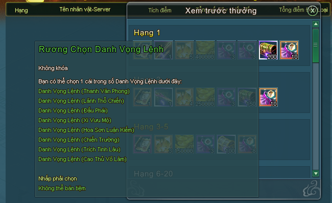 - Tăng phần thưởng cho nhân vật thuộc hạng 6-20.