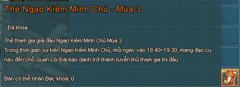 - Dùng Thẻ Ngạo Kiếm Minh Chủ - Mùa 3 để báo danh tham gia giải đấu với tư cách tuyển thủ.