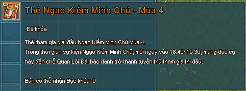 - Dùng Thẻ Ngạo Kiếm Minh Chủ - Mùa 4 để báo danh tham gia giải đấu với tư cách tuyển thủ.